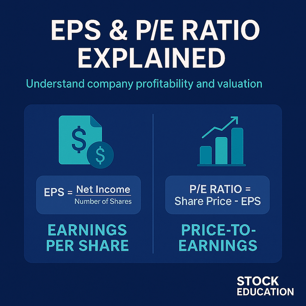 The P/E ratio compares a company’s share price to its EPS. It helps investors judge if a stock is “expensive” or “cheap” compared to its earnings.