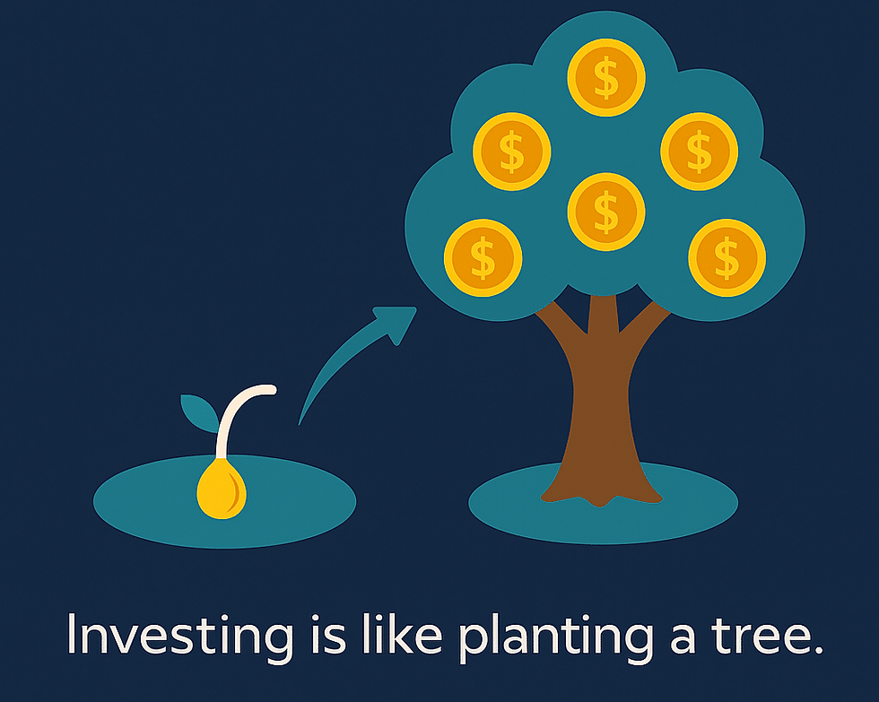 Investing is a lot like planting a tree. You put a small seed (your money) in the ground and, with care and patience, it grows into something big that provides fruit year after year. This “seed to tree” story works wonders with younger kids.